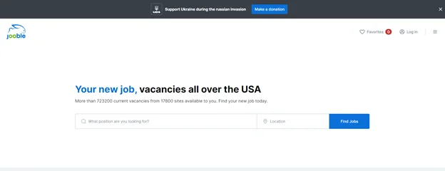 4. You will be redirected to the Jooble homepage, where you can start searching for jobs, saving job searches, and applying for job vacancies.