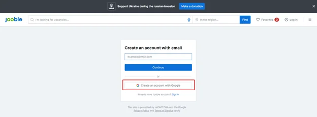 Here are the step-by-step instructions with screenshots on how to sign up with Jooble: