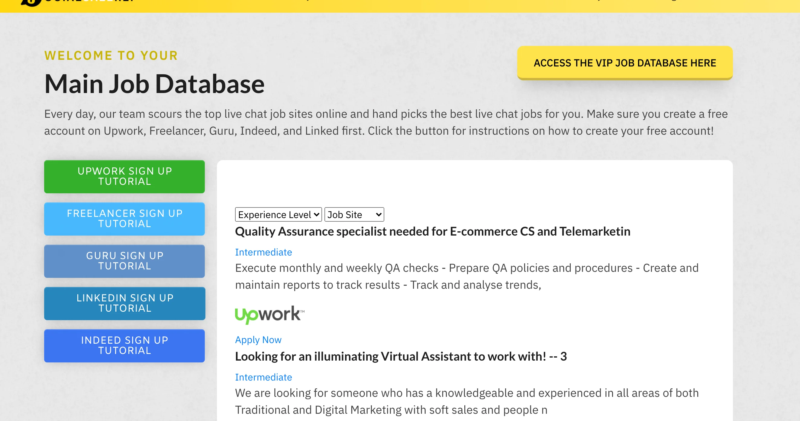 Before we dive into how to use it, here’s a quick reminder. To make the most of our epic jobs database, you’ll need to create accounts on the top platforms. We’ve already covered that in our previous lessons. So if you skipped those, now is the time to go back and get that done. It’s important!